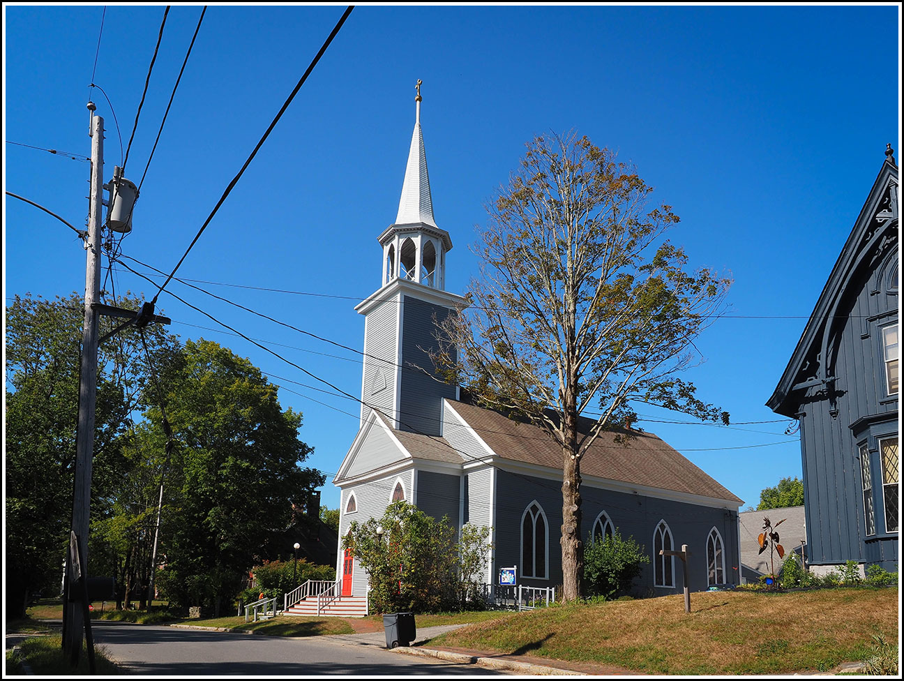 This was the second of two church spire landmark stations we found this morning. The first was a white spire on the nearby Congregational Church. This one, the second, was once a brown spire but is now also painted white. There is no reason to think that the spire or the church have been otherwise modified, though, since the station was first observed in 1857 and 1934. The church is St. Philip’s Episcopal Church.